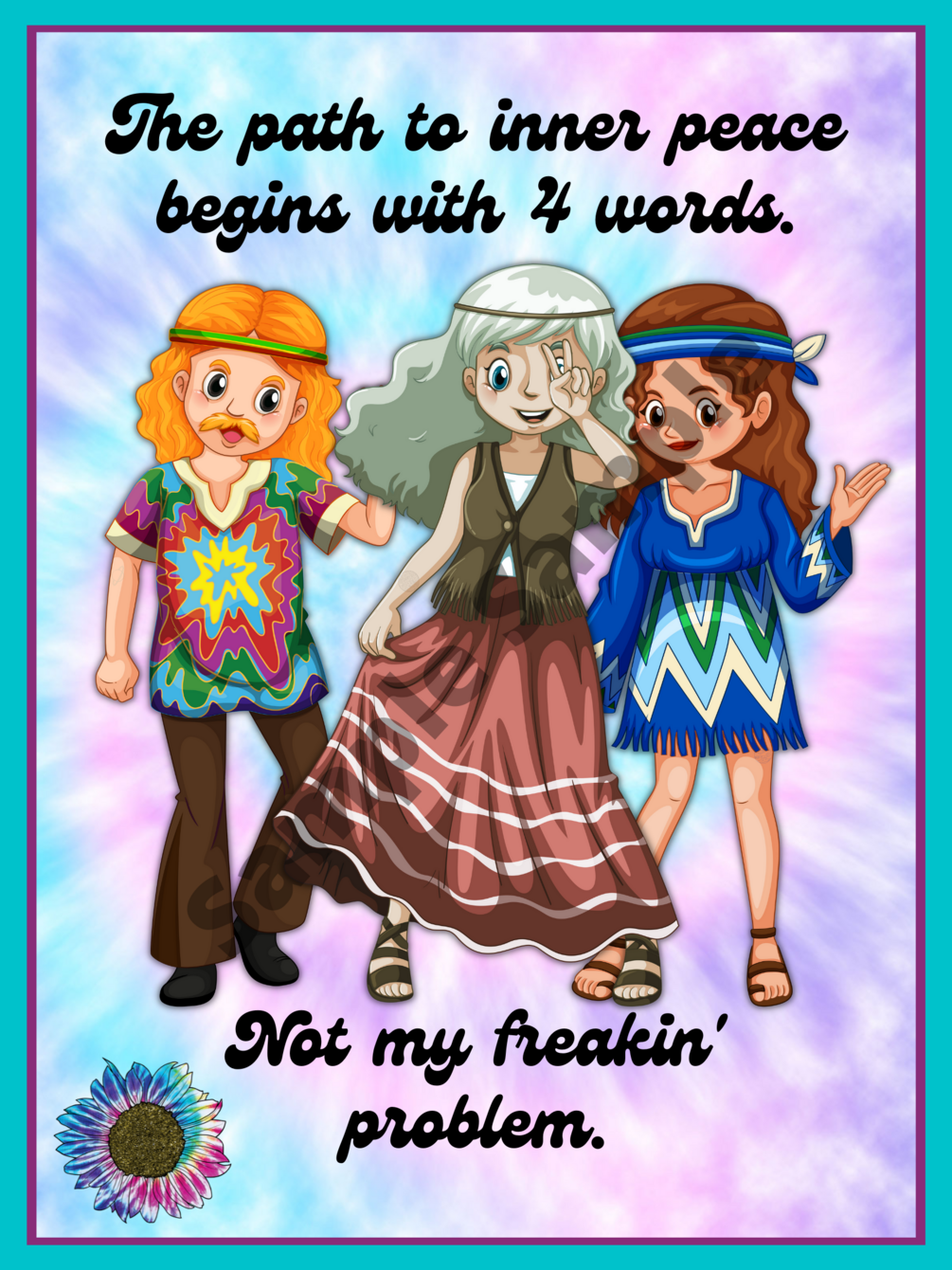 Hippie poster, tie dye, people. Funny saying quotes. PNG, JPG, SVG, PDF 18x24